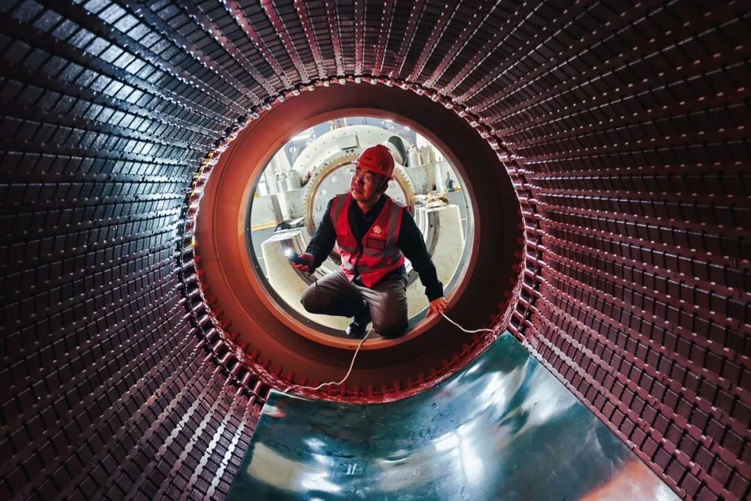 近日,随着发电机转子“穿针引线”般精准落入定子膛内,集团公司首个线性菲涅尔光热电站——龙源电力甘肃敦煌100兆瓦熔盐线性菲涅尔光热项目发电机转子穿装作业圆满完成,为项目投产发电奠定坚实基础。