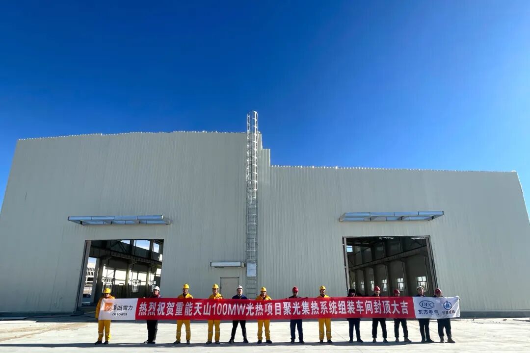 11月27日,重能新疆天山北麓新能源基地100兆瓦光热发电项目高风速定日镜组装厂房正式完工,标志着项目履约进入新阶段,更为光热项目核心部件——定日镜的顺利出产奠定了坚实基础。