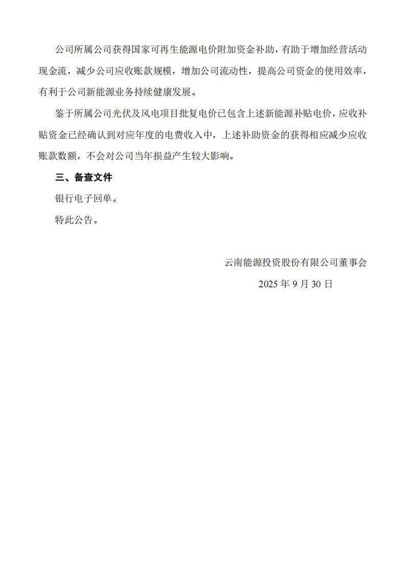 云南能投获6.18亿元国家可再生能源电价附加资金补助