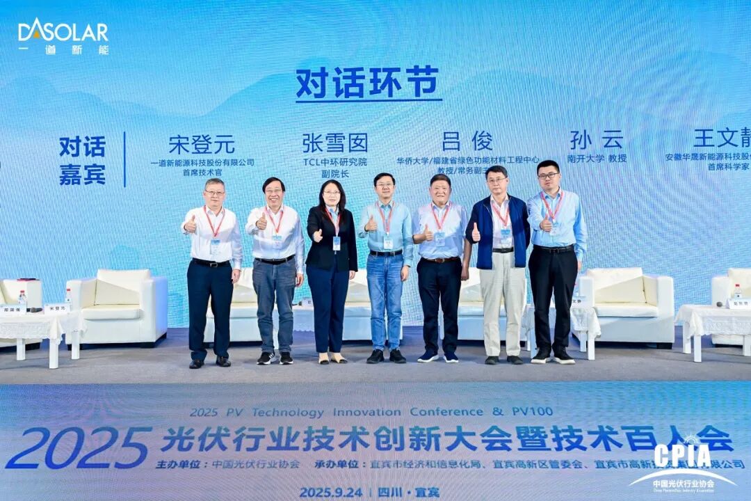 近日,“2025光伏行业技术创新大会暨技术百人会”在四川宜宾盛大召开。在大会开幕式后,一道新能CTO、同时担任CPIA咨询专家的宋登元博士,作为大会首位主旨报告嘉宾,发表题为《光伏前沿技术与产业化发展》的深度分享。同时宋登元博士作为对话嘉宾参加了高峰对话环节,与行业专家就光伏技术多元化共生发展路径、度电成本优化策略及技术未来发展格局等议题展开深度交流。