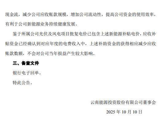 云南能投:2025年累计获得国家可再生能源电价附加资金补助6.44亿元