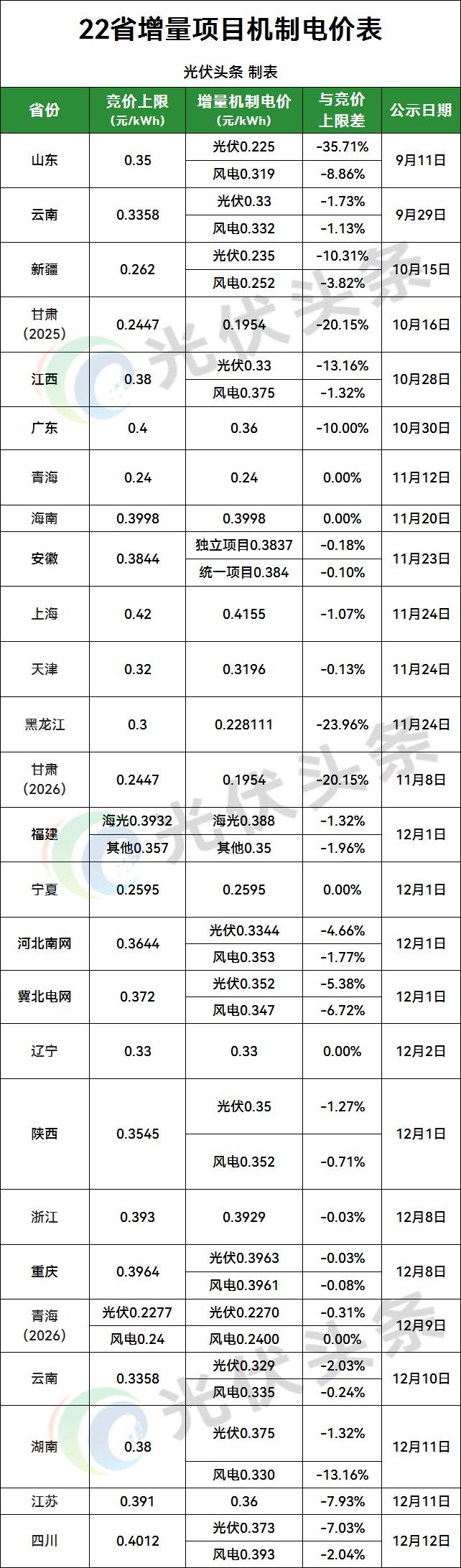 上一篇 : 云南2026年机制电价结果:光伏0.329元/度,风电0.3
