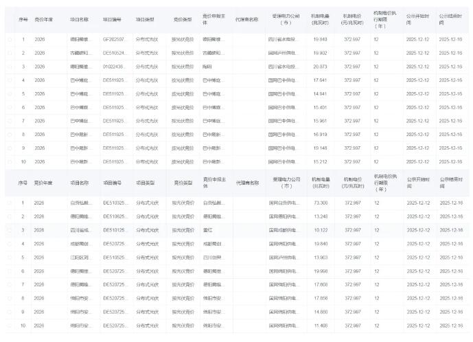 光能圈获悉,12月12日,国网新能源云公示四川省机制电价竞价结果。