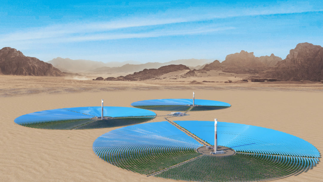 该项目规划装机容量350MW,创新性采用“三塔一机”设计方案(即三座集热塔协同集热,共用一台汽轮机发电),镜场总反射面积约330万平方米,控制系统规模达8.9万台定日镜,储热容量约10.6GWht,是目前全球单机规模最大、镜场反射面积最大、储能规模最大、年设计发电量最高的光热发电项目,计划于2027年9月底前全容量并网发电。